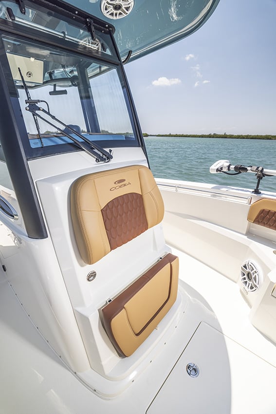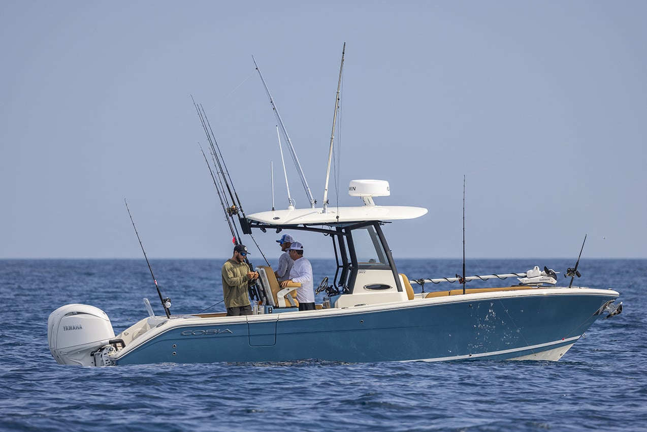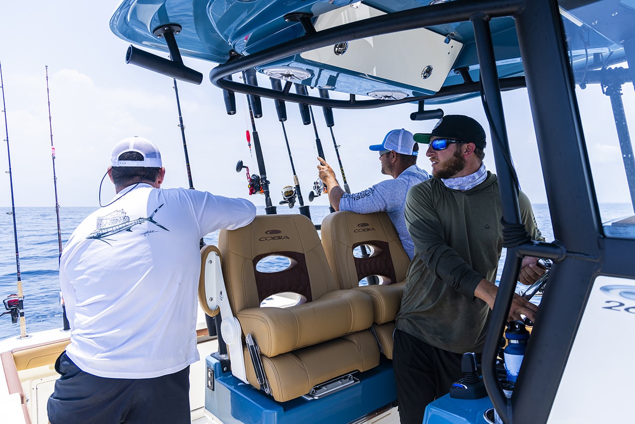 But the 265 CC Open is more fishing focused with a layout that’s designed to give you more room for the crew and all your gear. The most noticeable difference is the increased open area fore and aft for full walk-up access to the bow and stern. Multiple helm seat station configurations allow you to pick your favorite. A forward console jump seat provides a place to relax when you need it and tucks out of the way when you don’t. Choose the added deep drop set up with electric reel outlets to give you more ways to bring home dinner. Overall, the extra deck space, fishing-focused features and Cobia-level comfort are how anglers have it all.