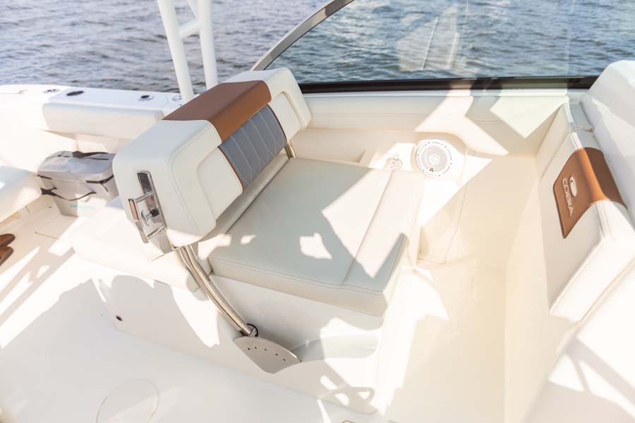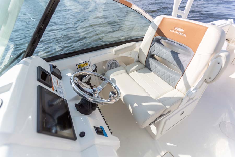 The most feature-packed 24-foot dual console on the water! From its spacious and clean layout to its wealth of smart amenities, the Cobia 240 DC beckons you to a relaxing, sun-drenched day on the water. Dedicated seating with deluxe upholstery for nine, including a hideaway aft bench and a convertible first-mate’s chaise lounge, means everybody on board will ride in style and comfort.