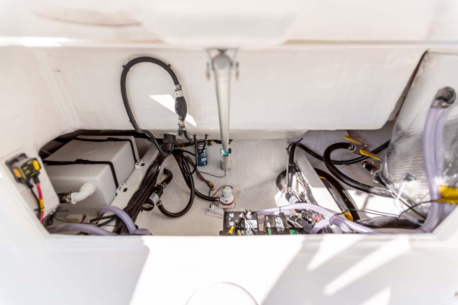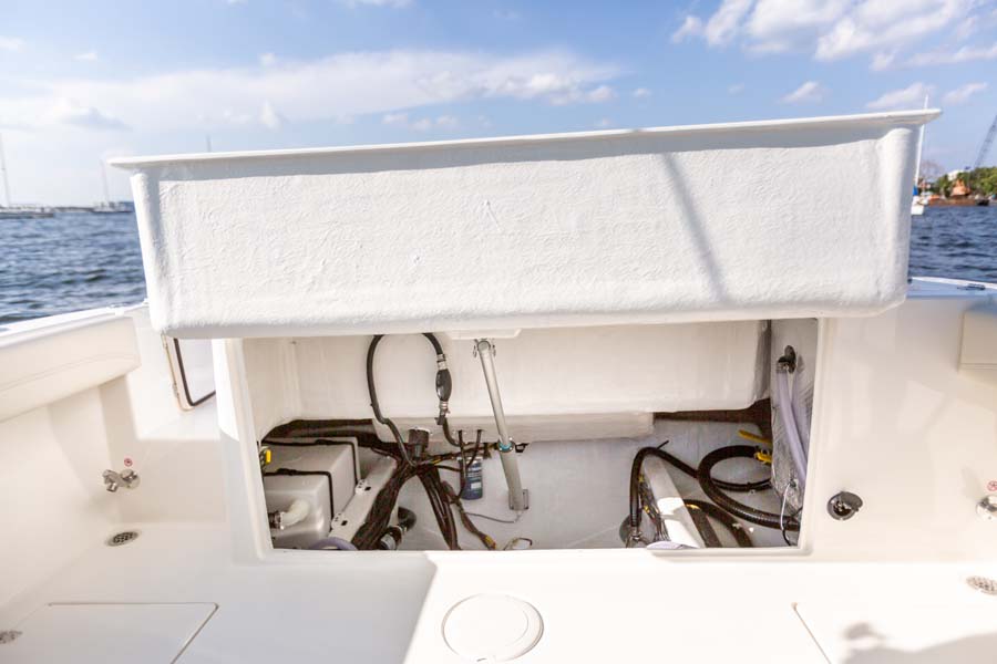 But just because comfort is at a premium it doesn’t mean that the serious angler is forgotten. This boat expertly melds all its soft touches with standard fishing features like dual in-floor 24-gallon fishboxes (macerators optional), a 22-gallon fully plumbed livewell, plenty of rod and tackle storage and a bait prep area with sink. Combine all this and there’s no better looking, more feature-rich and better performing 24-foot dual console on the water.